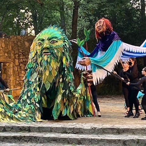 Since 1998, they have been using cardboard, corn starch, bamboo, your old house paints, and other assorted junk to create giant puppets, masks, shadow plays, and performances for all ages.